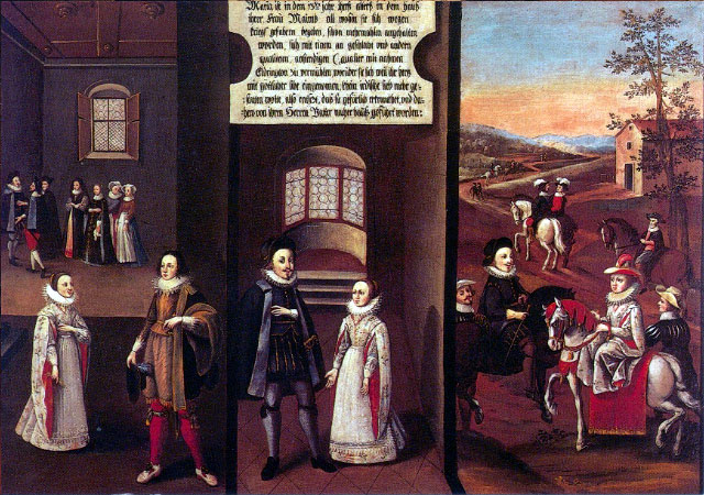 The inscriptions on the paintings are written in German and were most likely added at the end of the seventeenth century after the completion of the pictures.