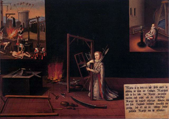 The earlier paintings are better artistically than the later ones, and tell the story of Mary Ward’s early life, her vocation and the founding of her institute. Many of the later ones are artistically not remarkable but they contain a series of deep spiritual experiences that are not known from the written sources.