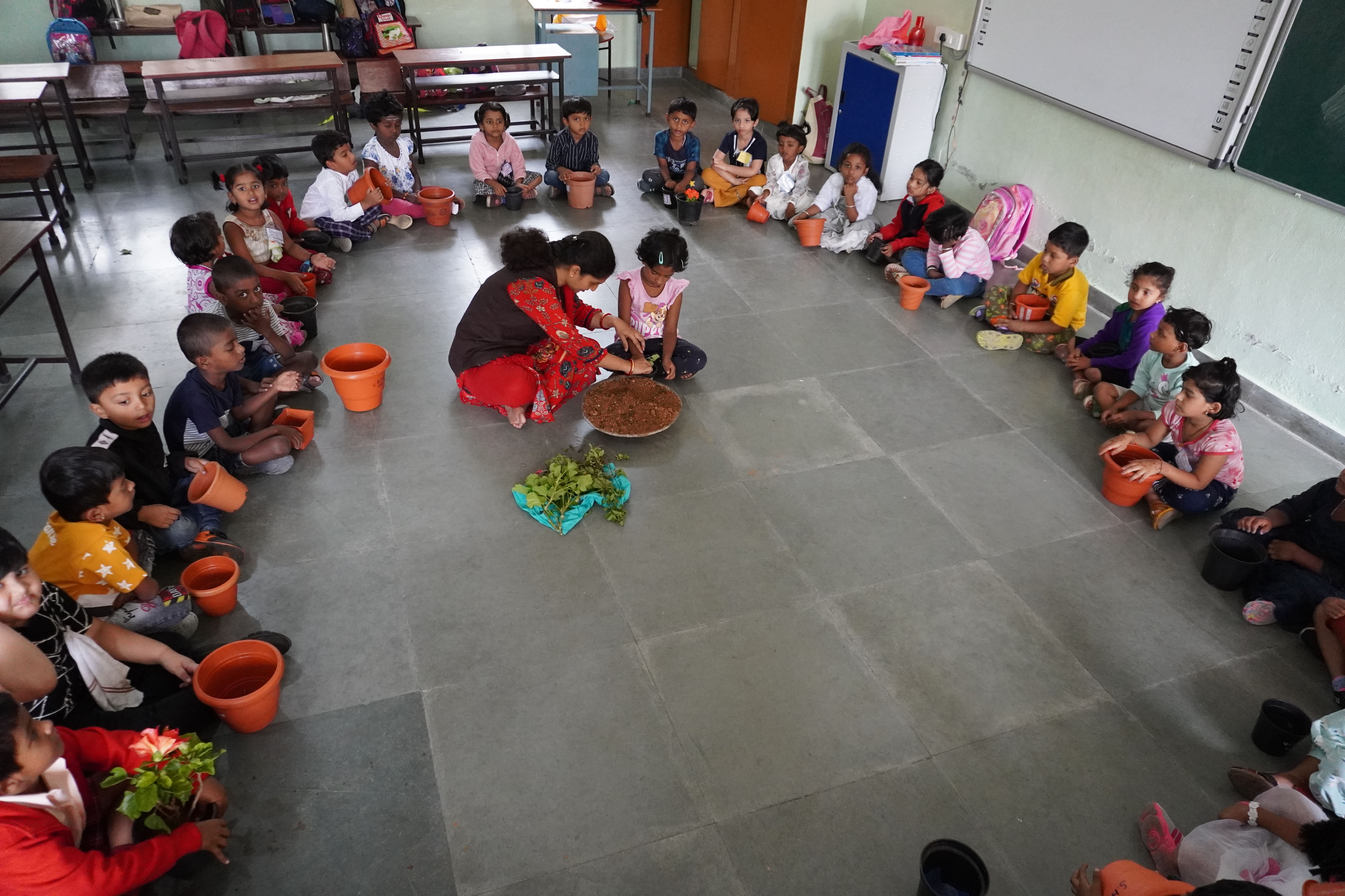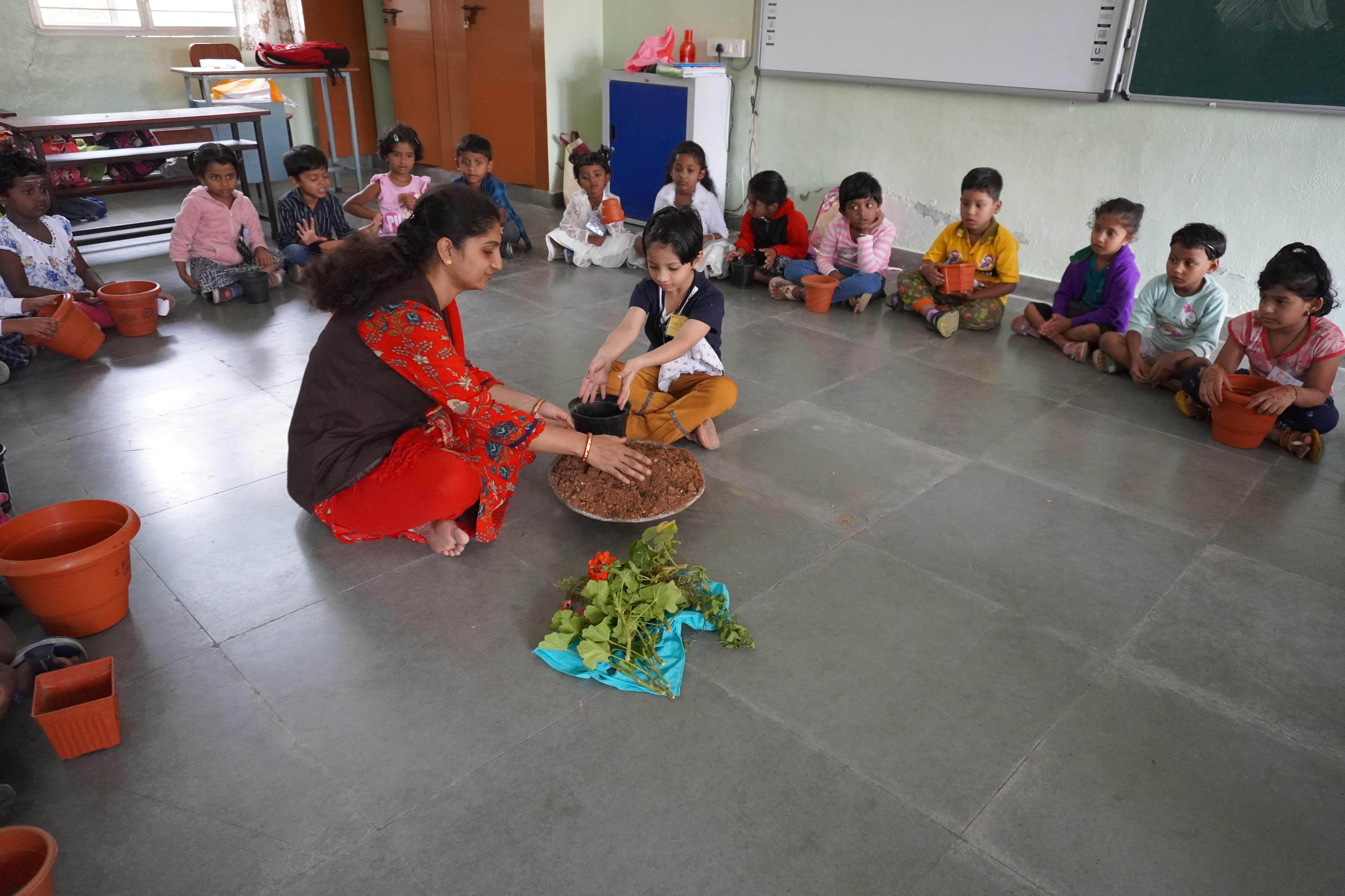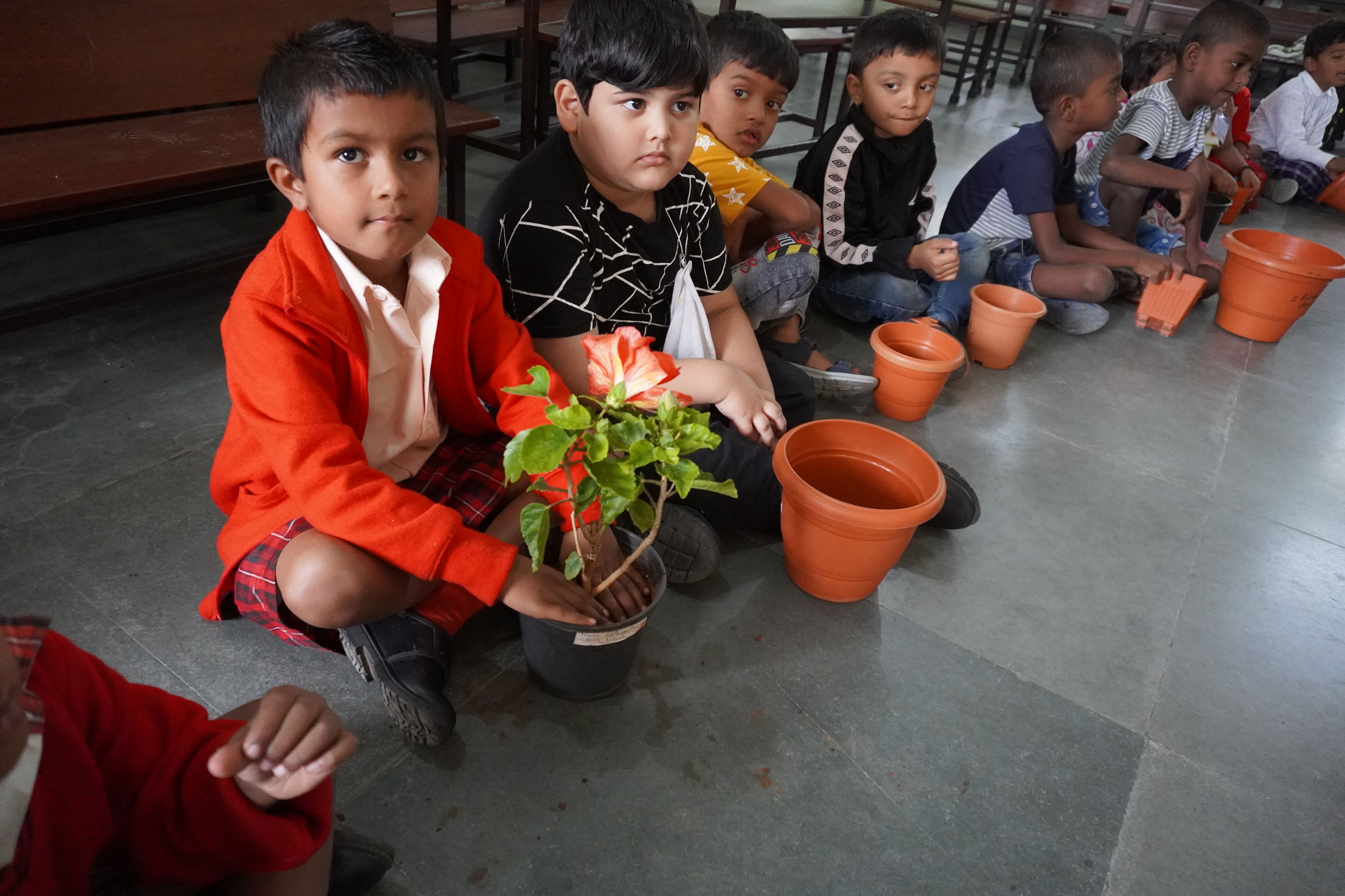 Gardening day celebrated by KG students.