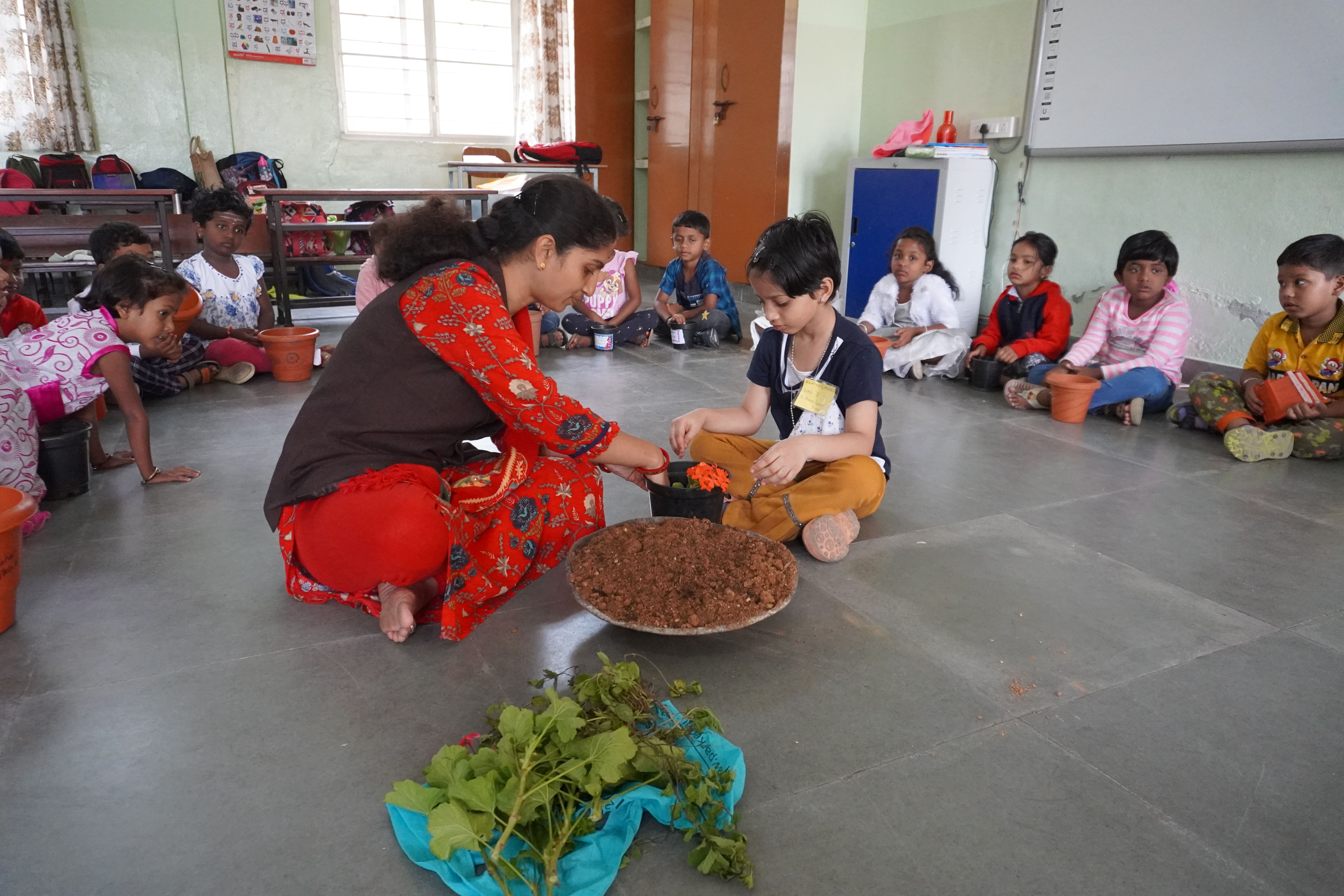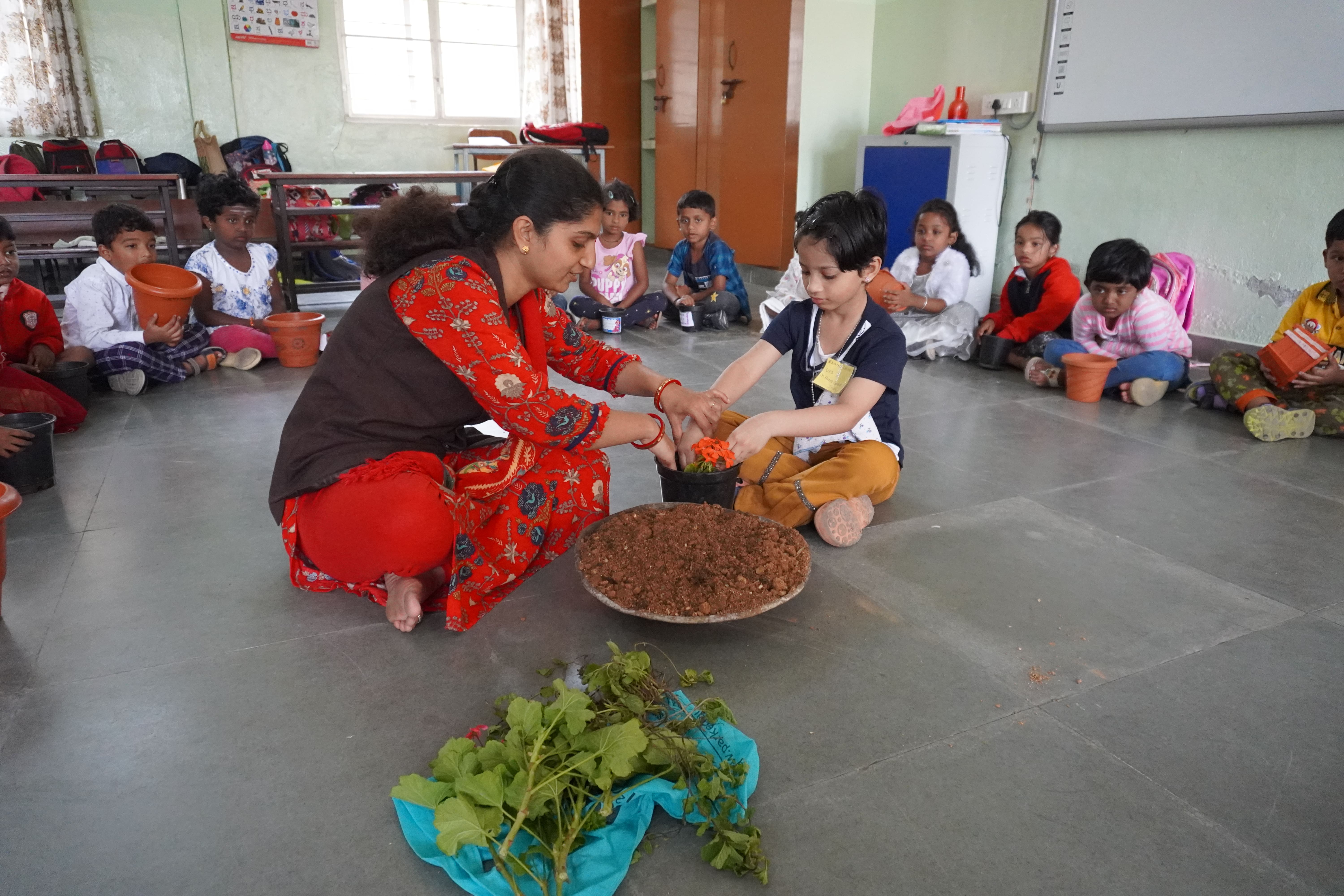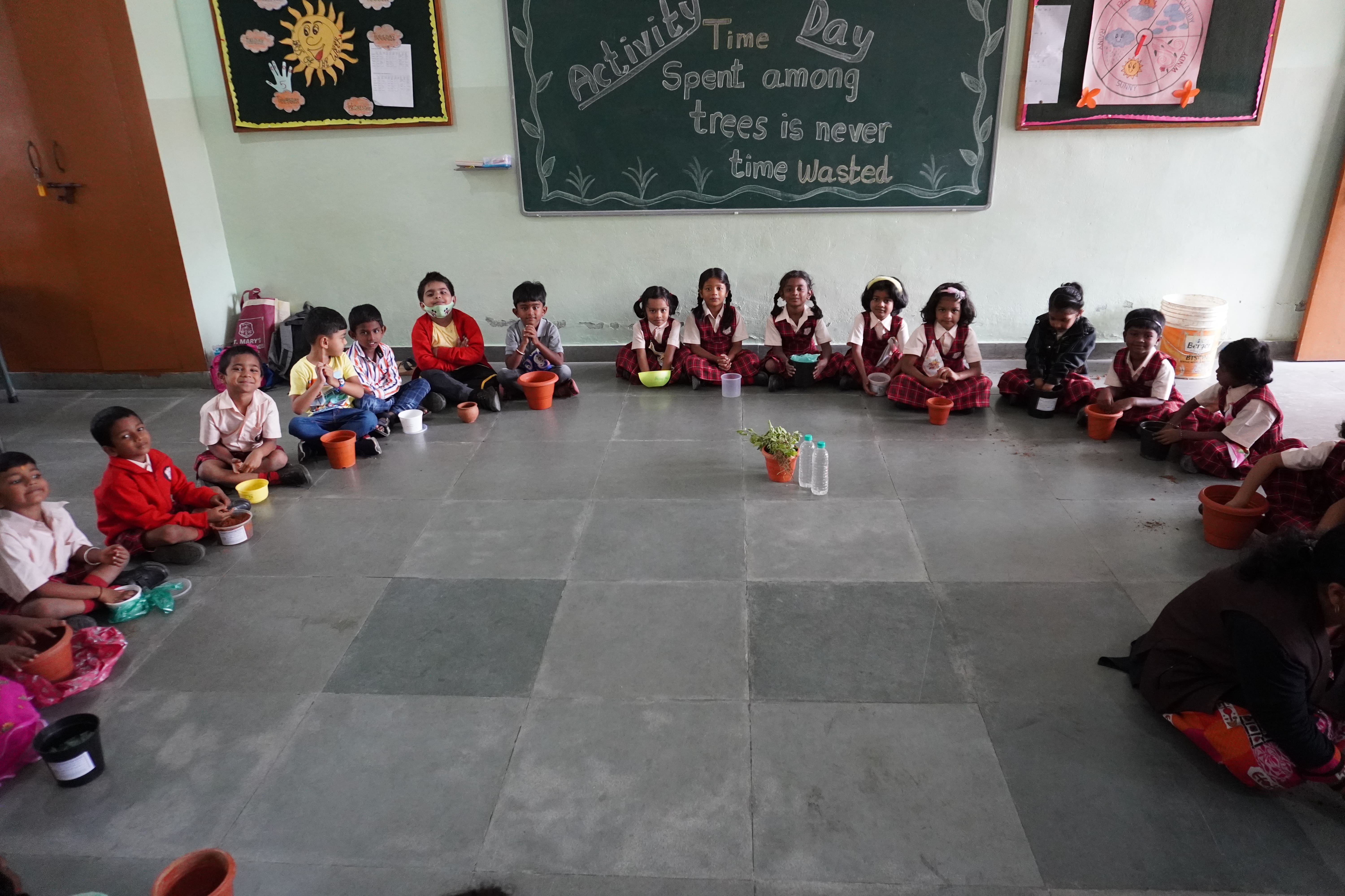 Gardening day celebrated by KG students.